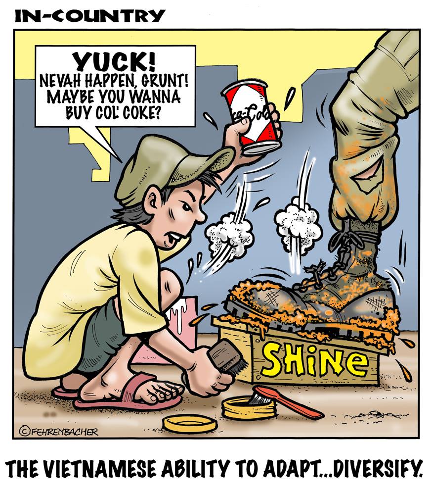 Phil enlisted in the Army in 1965 where you served for years in Vietnam. He became a graphic designer and has worked for the state of Oregon for 26 years. He retired in 2003 and started the Cartoon "In-Country". The cartoons reflect his experiences during his tour of duty in South Vietnam.